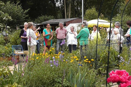 Zusätzlich gab es in diesem Jahr erstmals zwei Führungen durch den Garten. Um 11:00 Uhr hieß es „Kleine Maßnahmen – Große Wirkung“. Auf einem Rundgang durch den Garten wurden verschiedenen Möglichkeiten gezeigt, einen Garten naturnaher zu gestalten und Lebensräume für Pflanzen, Bienen, Vögel, Insekten und Menschen gleichermaßen zu gestalten. Kleine und große Wasserstellen, Nisthilfen, Magerbeete mit Sandflächen für Wildbienen und Nahrungspflanzen für Nützling wurden gezeigt.