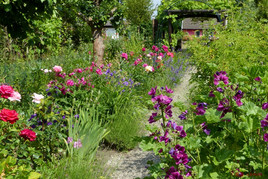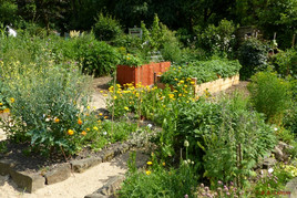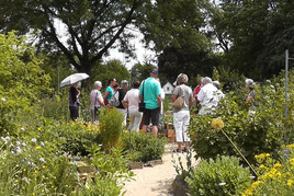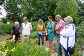 Die zweite Führung um 14:00 Uhr beschäftigte sich mit dem Thema „Alte Kultursorten im Gemüsebeet.“ Im theoretischen ersten Teil wurde kurz über die Geschichte der Landwirtschaft, die Entstehung der ersten Kultursorten und die Weiterentwicklung durch Züchtungen gesprochen. Es wurde darauf hingewiesen, dass viele Gemüsesorten aus den alten Bauerngärten immer weiter in Vergessenheit geraten und verloren gehen. Anschließend wurden In einem Rundgang durch die Obst- und Gemüsebeete Schinkenwurz, Guter Heinrich, Karmesinbohnen, Kapuzinererbsen, Zuckerwurz, Spargelerbsen und Habermark (Haferwurzel) vorgestellt und z.T. verkostet.