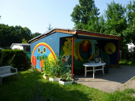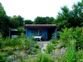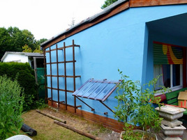 Das geplante zweite Projekt war die Renovierung des Gartenhauses. Da vorher ein Kindergarten den Naturgarten betreut hatte, war das Haus damals kinder-kunterbunt gestrichen worden.