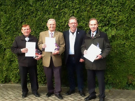 Kretzschmar mit einer Urkunde und einem Buchgeschenk , als Dank und Anerkennung für engagierte Mitarbeit besonders geehrt. Ebenso Felix Ostermann für 25 Jahre engagierte Leitung der 1. Nabu Stadtbezirksgruppe in Dortmund. Der Tag klang aus für einen Teil der Gruppe mit einem kleinen Spaziergang durch das nahe gelegene Naturschutzgebiet Langeloher Wald und einem gemütlichen Beisammensein im Café Residenz in Castrop - Rauxel.
