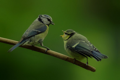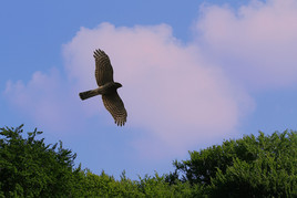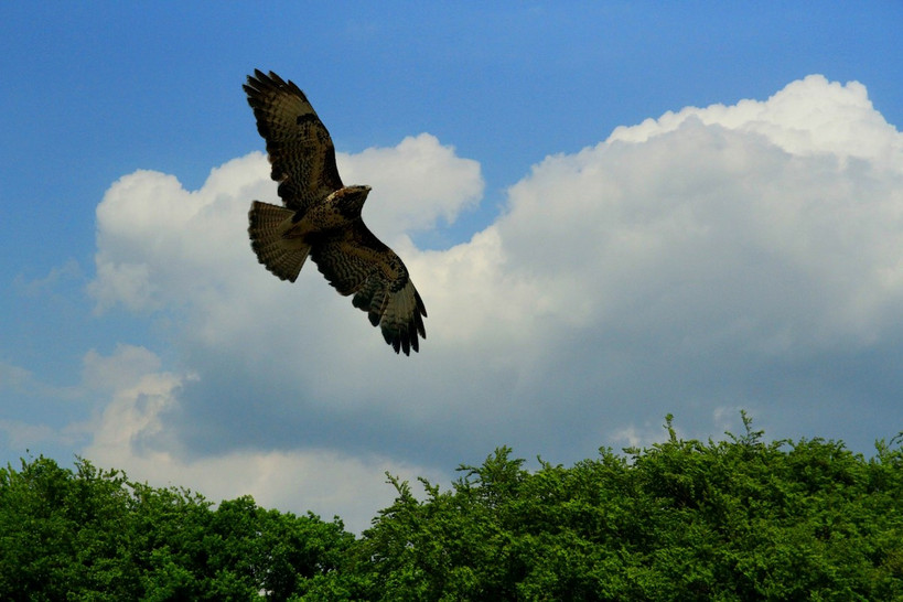 Über ruhigen Waldgebieten machen mit gut vernehmbaren Bettelrufen junge Greifvögel wie Mäusebussard, Sperber und Habicht auf sich aufmerksam. Nicht selten lassen sich deren Elternvögel am Waldrand auf nahen Feldern und Wiesen nach Beute spähend beobachten. Schließlich müssen sie ihre jungen bettelnden „ Krummschnäbel “ auch sättigen.