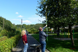 Bereits zum zweiten Mal gab es in der in der Gartenanlage Dortmund Nord e.V. ein Apfelfest in Kooperation mit dem NABU-Dortmund. In den Vormittagsstunden hatten die Gartenpächter bereits tatkräftig Schubkarren voller Äpfel auf der Apfelwiese der Gartenanlage geerntet. Diese Äpfel wurden dann in Teamarbeit klein geschnippelt und gemeinsam mit Klaus Horn vom NABU Dortmund zu frisch gepressten Apfelsaft verarbeitet und selbstverständlich sofort verkostet.