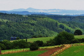 Beißender Rauch verbreitete sich schnell in den Abteilen des Anschlusszuges. Was war da geschehen? An der Diesellok war aufgrund einer Bremsblockierung (sagt man) ein Feuer ausgebrochen, das man auf kurvenreicher Strecke gut sehen konnte. Aber das Fahrpersonal hatte alles sofort unter Kontrolle und wir kamen fast pünktlich in Blankenheim Wald an. Vom dortigen Bahnhof erfolgte der Start in eine sehr schöne Panoramalandschaft.