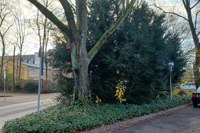 Mitte November dieses Jahres wurde ich als ausgebildete Falterfreundin vom NABU NRW gebeten eine Auszeichnung zum „Schmetterlingsfreundlichen Garten“ hier in Dortmund zu prüfen und ggf. durchzuführen. Hierbei handelt es sich um eine kommunale Fläche, eine große Baumscheibe mit Parkplätzen in der Großen Heimstraße vor dem Haupteingang des Süd-Friedhofs (Südwest-Friedhof) [Fotos 1+2]