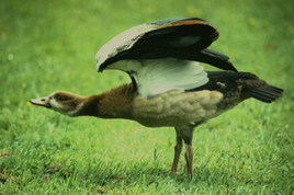 Sie wurde im 17.Jahrhundert in England als Ziervogel eingeführt hat sich aber in den letzten Jahren als Gefangenschaftsflüchtling sehr stark in den Niederlanden und Deutschland ausgebreitet und lebt jetzt als Wildvogel. Sie zählt zu den erfolgreichen Neozoen ( Neubürger ) in der Fauna. Die Bestände nehmen drastisch zu.Wegen Verdrängung anderer heimischer Wassergeflügelarten darf die Nilgans bei uns jetzt bejagt werden. Wenn es um die Wahl des Nistplatzes geht ist die Nilgans sehr flexibel. Normalerweise baut sie ihr Nest am Boden in Gewässernähe. Es kommt aber auch vor, dass sie auf Bäumen oder in Felsspalten brütet. Nicht selten sucht sie bei uns hohe Gebäude auf um ihr Brutgeschäft zu tätigen.