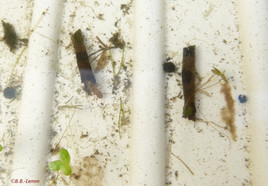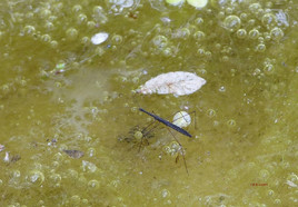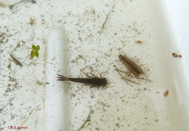 Die Ionen-, Nitrat- und Ammoniumwerte waren im kleinen und somit guten Bereich. An gekescherten Wassertieren haben wir Larven von Eintagsfliegen, Köcherfliegen, Glasmücken und Zuckmücken gefunden. Dazu Wasserasseln in verschiedenen Größen, Wasserflöhe und eine Larve der frühen Adonislibelle.