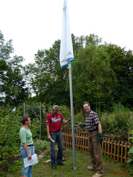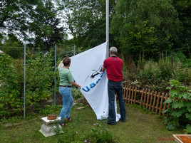 Im Juni fand im NABU-Garten der Tag der offenen Parks und Gärten statt. Viele NABU-Mitglieder hatten sich dort getroffen. Auf Vorschlag des anwesenden Vorstands wurde beschlossen, die vorhandene NABU-Fahne im Garten zu hissen.