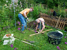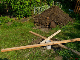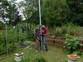 Am 17.Juli 2014 haben Raimund Barwe und Hans-Werner Lange das Fundament ausgehoben, die Bodenhülse eingesetzt, fixiert und zementiert.