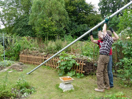 Raimund Barwe hat sich dieses Projekts angenommen. Er hat einen passenden Fahnenmast bestellt, der dann auch direkt in den Garten angeliefert wurde.