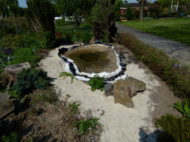 Anstelle eines defekten Sumpfbeetes sollte als weiteres Kleinbiotop ein Teich einstehen, der in Zukunft die Biodiversität im NABU Garten weiter erhöhen wird.