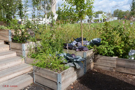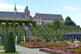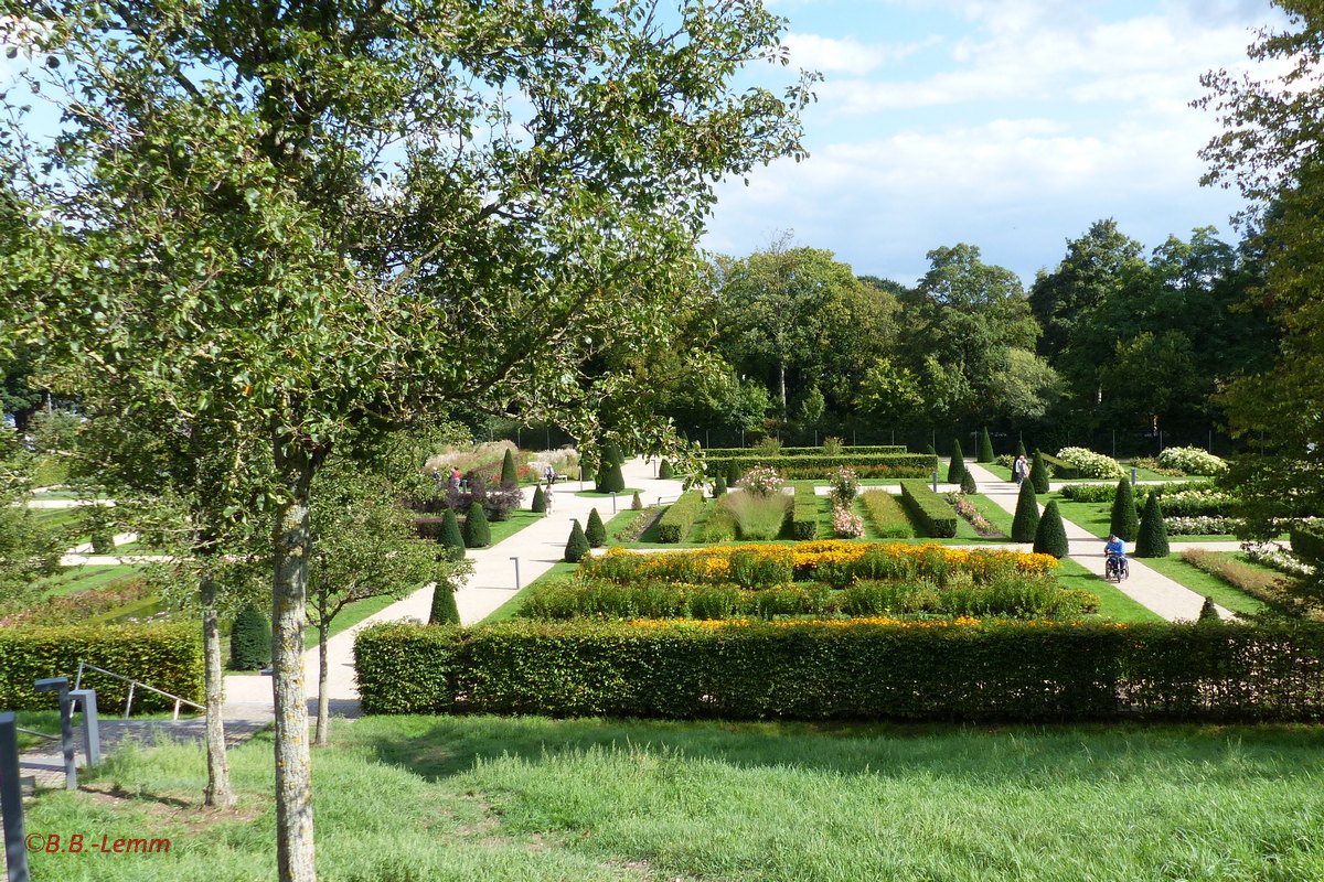 Nach der Führung waren wir noch zu einem gemeinsamen angemeldeten Mittagessen. Danach hat sich die Exkursionsgruppe getrennt und Klaus-Dieter und ich sind die Zechenparkfläche nochmals abgegangen und dann noch mit dem Shuttlebus zum Kamper Gartenreich auf dem Abteiberg gefahren. Der Bereich um das Kloster Kamp hat sich im Vergleich zu früheren Besuchen kaum verändert (Foto 24-26). In den letzten Jahren sind nur der rekonstruierte Alte Garten, der Weinberg und die Obstbaumwiese mit dem Bienenhaus dazugekommen. Der barocke Terrassengarten wurde ja bereits vor Jahrzehnten restauriert.