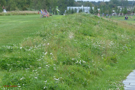Hier auf der Landesgartenschau hatten die Wiesen beste Standortvoraussetzungen, da auf den Halden entsprechend stickstoffarme, kalkreiche Erde mit gutem pH-Wert aufgetragen wurde. Ausgesät wurde mit 4-6 Gramm pro Quadratmeter zur Schaffung eines Dauergrünlands.