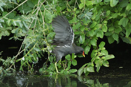 Als die Fähre dann ablegte, ging es los. Wir hatten freie Sicht auf Kormorane, Haubentaucher, Graugänse und Silbermöwen. Stromaufwärts entlang der Ruhr standen am Ufer immer wieder ein paar Graureiher und auch Zwergtaucher mit Nachwuchs waren neben Teichrallen und Höckerschwänen zu beobachten.