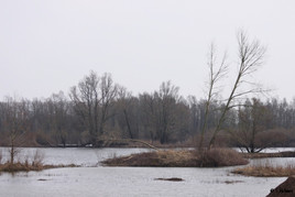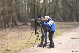 Danach ging es weiter zum niederländischen Naturschutzgebiet Millingerwaard, das einige von uns schon im Sommer letzten Jahres wegen der Trauerseeschwalben aufgesucht hatten. Es war interessant, das Gebiet zu einer anderen Jahreszeit zu sehen. Wo im Sommer Gelbspötter, Grasmücken und Rohrsänger singen und sich der Schwarzstorch im Au- und Bruchwald herumtreibt, waren jetzt nur Buntspecht, Gartenbaumläufer, ein Wiesenpieper und ein rufender Zilpzalp vor Ort.