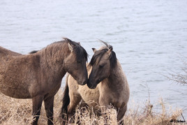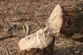 Das Vorkommen des Bibers in diesem Gebiet war offensichtlich, am Gewässerrand hatte er viele, selbst große Bäume gefällt. Die Abdrücke seiner starken Zähne im Holz der Baumstämme konnten alle Teilnehmer ausgiebig betrachten. In diesem Gebiet sind Biber Teil der Landschaftsgestaltung, genau wie die freilebenden Wildpferde, die im Winter die Rinde von den umgestürzten Bäumen schälen.