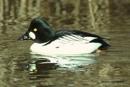 Unser Beobachtungsschwerpunkt sollte allerdings auf den Wasservögeln, die den Winter hier verbringen, liegen. So entdeckten wir auf einem großen Gewässer, das wir umrundeten, von weitem einige balzende Schellenten und eine männliche Spießente, dessen Prachtkleid eine wahre Schönheit darstellte. Natürlich waren auch dort Schnatter- und Reiherenten vertreten, aber auch ein weiblicher Zwergsäger zeigte sich im Suchfeld unserer Spektive direkt neben einem Graureiher.