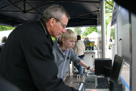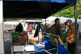 Überhaupt ist es bemerkenswert, wie viele ehrenamtliche benötigt werden, um eine Veranstaltung wie diese bewerkstelligen zu können. Reinhold Neugebauer hatte die Bücher zusammengestellt, Brigitte Handy das Infomaterial vorbereitet. Raimund Barwe übernahm das Be- und Entladen des VW-Busses, den Transport und stand auch später für div. Gespräche am Stand zur Verfügung.