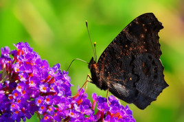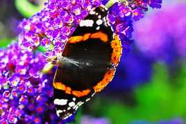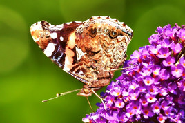 die Natur im Jahreslauf hat viele Gesichter. Sie zeigt in den kleinsten Dingen die allergrößten Wunder. Fürwahr, das erkannte schon der schwedische Naturwissenschaftler Carl von Linne vor mehr als dreihundert Jahren. Naturinteressierte Spaziergänger und Gartenfreunde sehen kleine und kleinste Naturwunder, welche sich zurzeit am Wegesrand, auf Brachflächen, an Blütenpflanzen des Grünlandes sowie auf der im Hausgarten angelegten Wiese mit nektarreichen Blumen und Pflanzen tummeln. Es sind Schmetterlinge, Fliegen, Käfer, Bienen, Hummeln und andere Insekten. Der Sommerflieder ( Buddleja ) oder Schmetterlingstrauch, seine duftenden lila Blüten locken hauptsächlich in diesen Tagen Wanderfalter wie Admiral und Distelfalter an. Aber auch Tagpfauenauge, C Falter, Kohlweisling u.a. laben sich hier. Ebenso Bienen, Hummeln, Schwebfliegen werden angelockt und naschen reichlich von der gesamten Blütenpracht, die sich hier auf unserer kleinen Blumenwiese bietet. Da gibt es kein Zögern und nur betrachten der wundersamen Geschöpfe. Kamera bestückt mit Makroobjektiv und Geduld ist gefragt. Schließlich möchte man die kleinen Naturwunder im Nachhinein später noch einmal betrachten, sich daran erfreuen und als Bericht wieder an interessierte Naturliebhaber auf unserer NABU Homepage zum Selbstbestimmen weitergeben oder vielleicht als Anregung zum Nachmachen. Dabei haben wir den Fokus hauptsächlich auf die Schmetterlinge gerichtet. Nebenbei bemerkt: Nicht wenige Menschen in unserer Stadt haben augenscheinlich ihr Herz wieder für die Natur entdeckt und fotografieren oftmals unter anderen vorgenannte Insekten. Das dokumentiert auch die Fotoaktion in den Stadteilnachrichten der Tageszeitungen. Bis zum nächsten Bericht aus der Natur vor der Haustür wünscht Ihnen weiterhin gute Gesundheit mit besten Grüßen