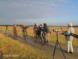 Zur Freude der Fotografen kamen die 41 kleinen Durchzügler bis auf etwa 100 m an uns heran, sodass wir sie bei sehr guten Lichtverhältnissen aus nächster Nähe beobachten und fotografieren konnten.