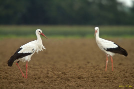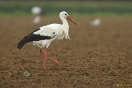 Auf unserer Weiterfahrt zur nahe gelegenen Disselmersch, entdeckten wir 28 Weißstörche, die auf einem frisch geeggten Acker Nahrung suchten. In unmittelbarer Nachbarschaft tummelten sich Lachmöwen, über 40 Bachstelzen und ein Steinschmätzer. Im NSG Disselmersch angekommen, suchten wir den hier gemeldeten Rosapelikan leider vergeblich.