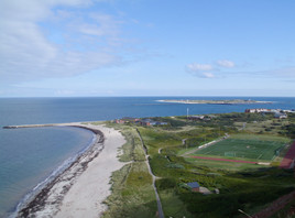 Auf Helgoland angekommen, galt es täglich von Sonnenauf- bis Sonnenuntergang den auf der Insel rastenden Vögeln Aufmerksamkeit zu schenken. Die allermeisten Beobachter stehen über Funk in Kontakt, sodass jede entdeckte Seltenheit schnellstmöglich aufgesucht werden kann. Oft waren wir zu viert unterwegs, so konnte uns nichts entgehen. Es gelangen schöne Beobachtungen vorbeiziehender Merline, fliegender Sumpfohreulen, nahrungsuchender Gold- und Sandregenpfeifern, zahlreicher Drosseln und Laubsänger sowie Ohrenlerchen. Mindestens 15 Gelbbrauen-Laubsänger aus der sibirischen Taiga waren täglich auf der Insel vertreten und machten durch ihren typischen Ruf auf sich aufmerksam. Die Basstölpel ließen sich nicht nur hervorragend an der Langen Anna beobachten, sondern boten auch beim „Seawatching“ im Spektiv einen schönen Anblick, als sie bei der Nahrungssuche wie Pfeile aus großer Höhe senkrecht ins Wasser eintauchten.