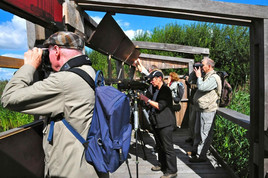 Am Ende unserer Tour suchten wir noch mal eine Beobachtungshütte auf mit erstklassiger Aussicht auf ein Gebiet mit Flachwasserzonen, bevorzugt von Watvögeln: da war zu sehen sogar ein recht seltener Kampfläufer und ein hin- und herwuselnder Zwergstrandläufer. Wir suchten immer noch weitere Arten und wurden abgelenkt durch einen kleinen Schwarm von 11 Rotschenkeln mit Grüßen aus dem kälter werdenden Norden, die Zugzeit begann merklich. Nicht zuletzt deshalb hatten wir so viele Arten gesehen hier auf diesem Gebiet - ein Rastplatz für viele Vogelarten und zugleich Gelegenheit "aufzutanken" für den Weiterflug in den wärmeren Süden.