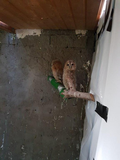 Ein weiterer sehr schwer wiegender Fall ereignete sich im Mai: in einer nahen Stadt sind zwei junge Waldkauz – Ästlinge von Anwohnern derart bedrängt und belästigt worden, dass uns andere Bewohner gebeten haben, hier einzuschreiten und die Aufzucht der beiden Vögel zu übernehmen.