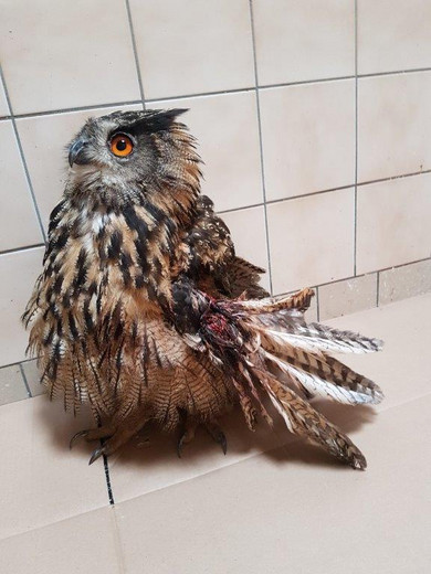 Vor dem Hintergrund, dass die Vögel, die in unsere Auffangstation kommen, nicht gesund sind sondern verletzt, abgemagert, infektiös etc., stellte der Zustand eines Uhus doch eine Besonderheit dar: