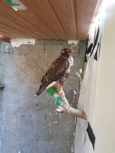 Eines der eingereichten Fotos zeigt einen Mäusebussard, der eine weisse Wand anstarrt. Dieser und ein weiterer Bussard waren blind, sie hatten beidseits ein angeborenes Katarakt.