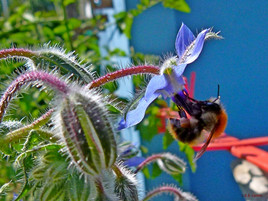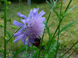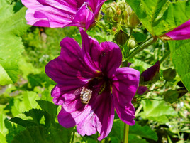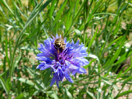 Dost, Kornblume, Flockenblume, Malve… Die Nektar-Bar im Juli-Garten ist weit geöffnet und es surrt und summt in allen Beeten. Auch Saatleindotter und blühende Radieschen sind Top-Nektarquellen mit täglich neuen Blüten.