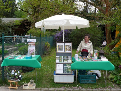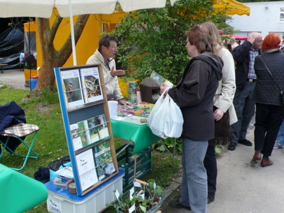 Der Wettergott hatte an diesem Tag trotz schlechter Wetterprognose ein Einsehen und fast den ganzen Tag die Sonne scheinen lassen. Wir waren mit dem Mini – NABU-Stand angekommen, hatten schnell aufgebaut und waren zwischen Kräuterständen Honigverkauf und Bistrostand gut platziert.