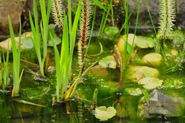 und beherbergt eine Vielzahl von Tiere. Frösche, Kröten und Molche finden einen Platz zum ablaichen.Weiteres Leben in und am Wasser sind zahlreiche Insekten wie Wasserläufer, Rückenschwimmer, Libellen u.a. Vögel und Säugetiere kommen zum Trinken und Baden.