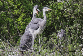 Hier geben Graureiher seit Tagen einen Einblick beim Nestbau , Brutverhalten und teilweise schon in die Jungvogelversorgung .