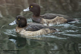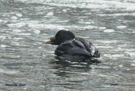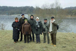 Hoch motiviert durch die Sichtung einer " Trauerente " durch Brigitte und Klaus Horn am Stausee Kemnade in Bochum, trafen sich am Sonntag den 12. Februar 2012 sieben Lüdo Ornis um 9:00 Uhr bei den Ostermanns, um den aus dem hohen Norden stammenden Wasservogel - welcher bei uns ein äußerst seltener Wintergast ist , auch zu sehen. Nach kurzer Fahrt zum Stausee wurden erst einmal die eisfreien Stellen der Vorteiche intensiv mit dem Fernglas abgesucht. Doch nirgendwo war die sonst bei uns nur an der Nord -und Ostseeküste überwinternde Tauchente zu sehen. Selbst an der kleinen eisfreien Fläche unterhalb der Wehrbrücke, dort wo der offene Zufluss des Ölbachs aus dem Klärwerk mündet, wo viele Wasservögel zugefüttert werden , war sie auch nicht zu entdecken. Etwas frustriert wurde der menschliche " Rückwärtsgang " eingeschaltet und nochmals intensiv der Ölbachzufluss abgesucht. War es Stefan oder Klaus welcher das Objekt ornithologischer Begierde zuerst entdeckte ? Egal - denn nun hatte sich das Ausharren bei Temperaturen unter dem Gefrierpunkt gelohnt und alle Ornis waren begeistert. Gelassen ruhig - um wenig Energie zu verbrauchen, schwamm da ein wunderschöner schwarzer Trauerentenerpel mit dem auffallenden gelben Schnabelfleck sowie mit dem ebenso auffallenden Höcker an der Schnabelbasis , fast direkt auf den Beobachtungspunkt und auf die fotografierenden Ornis zu. Natürlich wurden auch noch weitere interessante Vogelarten bis zum Mittag beobachtet. Durchgefroren und auch etwas hungrig wurde anschließend die nahe Gaststätte " Zum Möwennest " aufgesucht. Auf der Rückfahrt besorgten Rose und Martin noch Torte und ein schöner Tag endete bei Kaffeeklatsch und schon nostalgischen Erinnerungen an alte Zeiten bei den Ostermanns