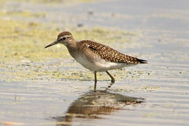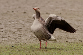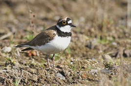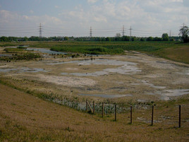 Anschließend standen die neuen Hochwasser - Rückhaltebecken der Emscher zwischen Dortmund Mengede und Castrop auf dem Tourenprogramm. Hier imponierten rund 20 Flussregenpfeiffer in Balzstimmung die ankommenden NABU - Beobachter. Ebenso zwei Rostgänse ohne Beringung und eine Anzahl Lachmöwen. In den unterschiedlich angelegten Becken zeigten sich in den Blänken ein Bruchwasserläufer, drei Kiebitze , zwei Graureiher , mehrere