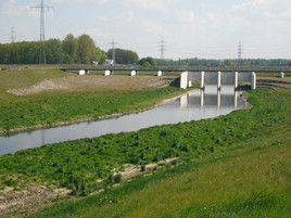 Kanada- und Graugänse. An den Hängen der Becken ließen sich Dohlen , Rabenkrähen , Wiesenstelzen , Feldsperlinge und andere beobachten. Am Wehr bzw. am Zufluss der Emscher tummelten sich einige Stock - und Krickenten sowie mehrere Höckerschwäne. Als Greifvögel in der Luft waren drei überfliegende Mäusebussarde und ein rüttelnder Turmfalke . Mit an Sicherheit grenzender Wahrscheinlichkeit wird künftig an und in den Arealen der Rückhaltebecken, die Natur dem aufmerksamen Betrachter vielerlei Erlebnisse vermitteln und vielleicht einmal sogar als Konkurrenz zu den Rieselfeldern in Münster angesehen werden.