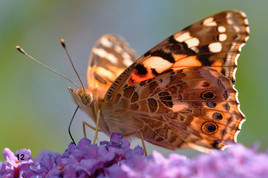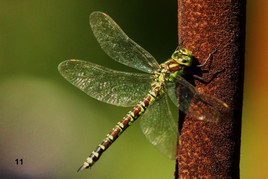 Harmonisch fügt sich auch ein kleiner Teich in das Gartengelände ein , wo sich an starren Rohrkolben und auf Randsteinen Libellen sonnten ( Foto 9 -10 - 11 ) . Und irgendwo gaukelte ein bunter Schmetterling von Blume zu Blume ( Foto 12 ) .