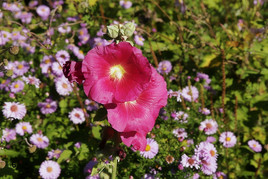 Die herbstlich ineinander greifende Blütenpracht farbig schimmernder Blumen und Gräser , ein bunter anmutender Farbenmix , der manche Betrachter und Fotofreunde anlockte .
