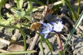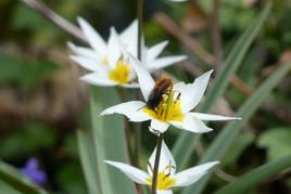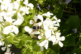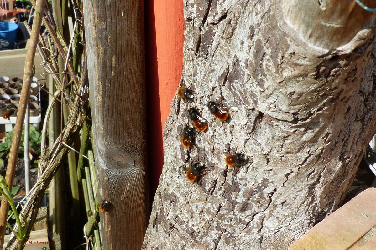 Die Insekten erobern den Garten ebenfalls wieder. Mittlerweile beginnt die Vergissmeinnicht-, Taubnessel-, Silberblatt-, Schlüsselblumen- und Obstbaumblüte. Ackerhummel, Erdhummeln, Sandbienen und die entsprechenden Blutbienen, Wollschweber, Siebenpunkt-Marienkäfer, Aurorafalter, C-Falter und Tagpfauenauge ließen sich bisher einzeln oder auch mal zu zweit oder dritt sehen.