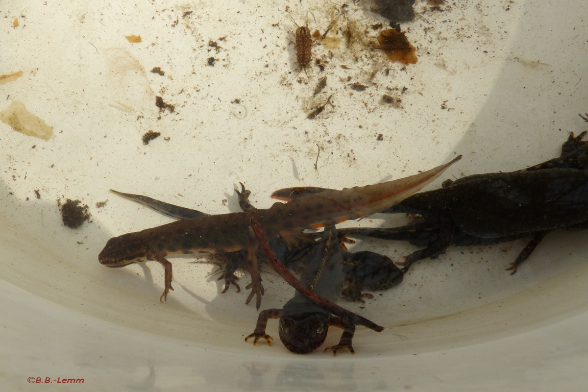 - 26 Bergmolche (darunter zwei trächtige Weibchen mit schon stark geschwollenem Bauch)