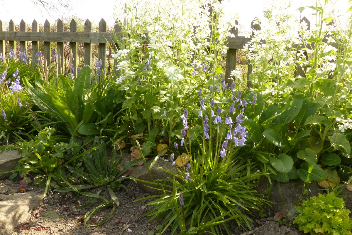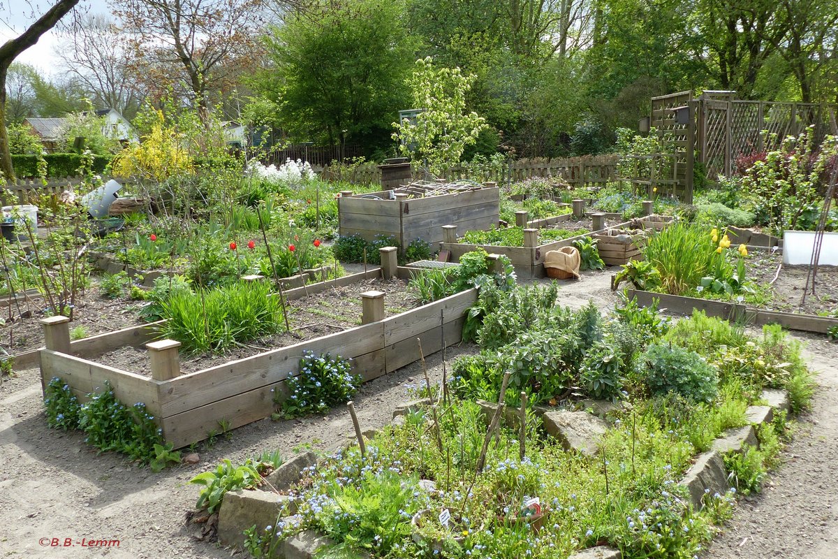 Im April sollte dann die offizielle Gartensaison mit vielen geplanten Veranstaltungen im NABU-Garten beginnen. Doch vorher kam leider die Corona-Pandemie mit dem Verbot aller Veranstaltungen. In den ersten Tagen war es noch unsicher, ob es eine Ausgangssperre in Dortmund gibt. Bisher ist sie noch nicht eingetreten. Daher können Klaus-Dieter und ich uns noch um die Pflege des Gartens kümmern. Die ersten Gemüsesamen sind jetzt Mitte April schon in der Erde und beginnen zu keimen. Geplant sind dieses Jahr Melde, Mangold, Dresdner Rettich, Blauschokker-Erbsen, Kiebitzbohnen und eine Pflücksalatsorte für die Saatgutvermehrung und natürlich auch zum Verspeisen. Unsere Dauergemüse wie Rhabarber, Winterheckezwiebeln, Bärlauch, Guter Heinrich und Etagenzwiebeln haben den milden Winter gut überstanden. Auch bei den Staudengewächsen beginnt nun verstärkt der Austrieb. Insbesondere auch unsere traditionellen und häufig kaum noch bekannten Nutz- und Zierpflanzen-Arten wie Färberkrapp, Haferwurzeln, Alant, Brennende Liebe, Vexiernelken, Nachtviolen, Federnelken, Goldlauch, Gedenkemein, Scharfe Kresse und meine Lieblingspflanze, die Jungfer im Grünen treiben wieder aus. Bisher konnte ich laut Datenbank ca. 180 Arten und Sorten wieder bestätigen.