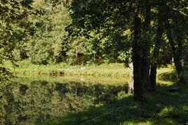 An den drei friedlich gelegenen Klärteichen des Rhader Holzbachs dann ein kleines Highlight für den versierten Vogelbeobachter: ein Waldwasserläufer saß am schlammigen Ufer an einem der Teiche und flog, als wir ihn entdeckten, einige Runden über das Gewässer, um sich dann wieder niederzulassen. Es reichte allerdings nur für Dokumentarfotos.