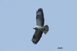 Der Gesangsvortrag zweier Gelbspötter hatte es uns besonders angetan und ließ uns vor Ort länger verweilen. Wenn man einen "Krummschnabelspezialisten " als Begleitung hat , der förmlich aus der Ferne schon einen Greifvogelhorst ausmacht , lässt sich auch schon mal ein so genanntes Belegfoto von einem der Vögel anfertigen . So ließ sich als Highlight des Tages, bei einem störungsfreien und respektablem Abstand zu einem Horst , mit einem Teleobjektiv bei 800 mm Brennweite ein bald flügger Nachwuchs des schönen fast weißen Mäusebussard , der übrigens im Gebiet schon länger verweilt , auf die Speicherkarte in der Kamera bannen. Über weitere sehenswerte und schöne Naturgebiete nahe unserer Stadtgrenze wird in loser Folge berichtet.