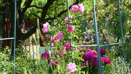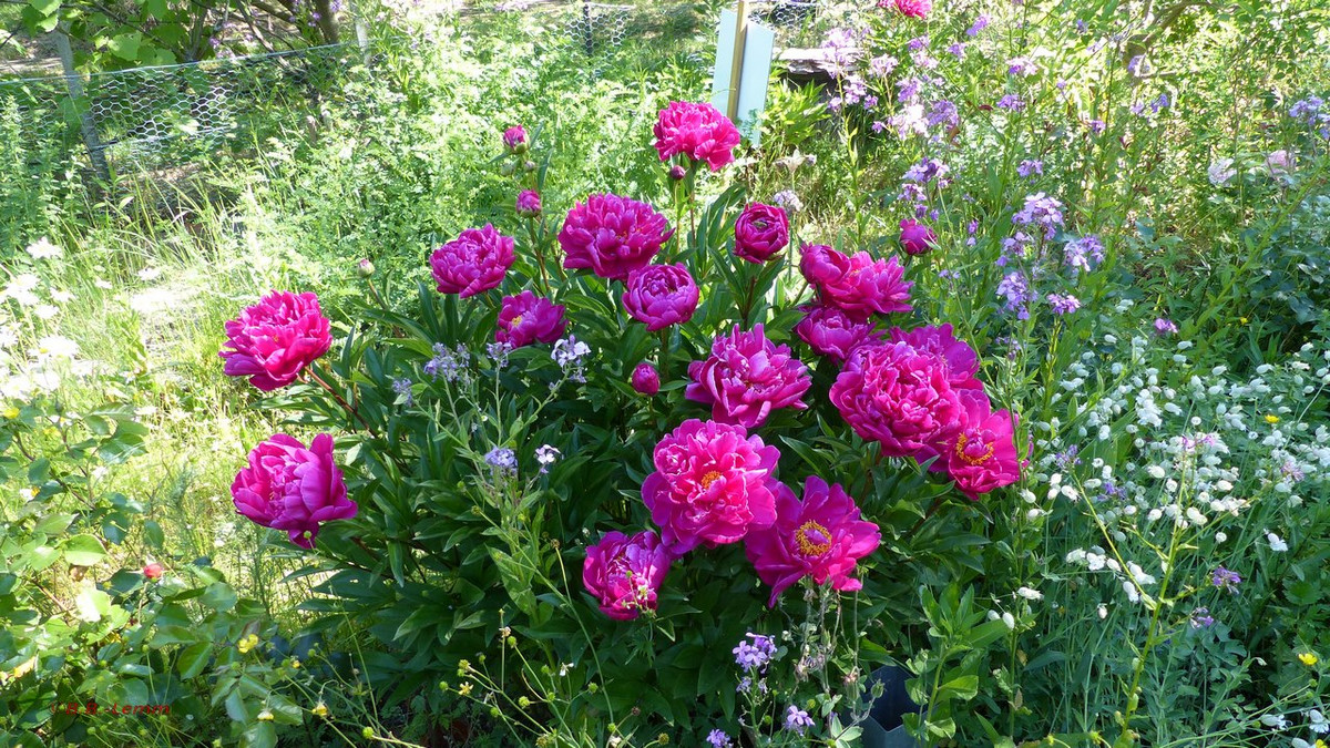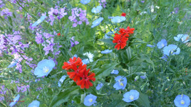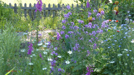 Jetzt zu Beginn des kalendarischen Sommers verliert der Garten seine frühlingshafte Leichtigkeit und fällt langsam in die schwermütige Trägheit des Sommers. Die kleinen Farbtupfer des Frühlings in Form von Vergissmeinnicht, Akelei, Schlüsselblumen und der Obstblüte räumen den Platz für Nachtviolen, Jungfer im Grünen, Glockenblumen, Fingerhut, Königskerzen, Pfingstrosen und mehr. Erste Pflanzen wie die Haferwurzeln bilden bereits ihre Samenstände aus. Aufgrund des hohen Fluginsektenaufkommens (Honigbienen, Mauer-, Sand und Scherenbienen, Hummeln) vergehen die Blüten der Pflanzen durch den häufigen Anflug und die Pollenernte sehr schnell. Sie blühen häufig nur ein paar Stunden, bevor sie frisch bestäubt bereits in den Samenstand übergehen. Gut das im NABU-Garten so viele unterschiedliche Wild- und Kulturstauden wachsen, so gibt es immer wieder neue Blütenformen und Farben im Garten.