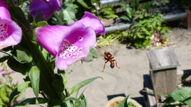 - > 100 Honigbienen, davon die meisten Wasser holend und wenige an den Blüten