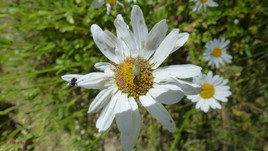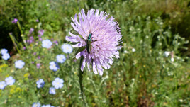 Heute am Pfingstmontag ließen sich das erste Mal in diesem Jahr die Männchen der Löcherbienen (spezialisiert auf Korbblütlerpollen) und der Natternkopf-Mauerbienen (spezialisiert auf Natternkopfpollen für die Brutversorgung) sehen. Passgenau zum Aufbrechen der ersten Färberkamillen und Natternkopfknospen. Ein so perfektes Timing zwischen blütenspezialisierten Bestäubern und Pflanzen lässt einen ehrfurchtsvoll über das Zusammenspiel und die Wichtigkeit von Naturkreisläufen nachdenken.