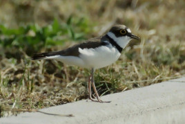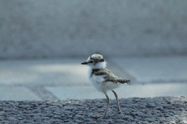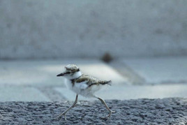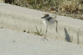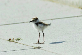 - störungsfrei einige Belegfotos anfertigen. Im Gelände auf größeren Schotterflächen sichteten wir neben Altvögel mit schon flüggen Jungvögeln, auch ein Brutpaar mit zwei Nestflüchtern, die gerade eine Straße überqueren wollten.Unter größter Vorsicht sicherte ein Altvogel und animierte seine sich kaum auf den langen Beinchen stehenden Nachkommen, einen relativ hohen Bordstein hinunter zu springen, um die Straße zu überqueren. Mutig sprangen beide Nestflüchter den Bordstein hinunter auf die zu überquerende Straße. Doch nur einer schaffte es auf der gegenüberliegenden Straßenseite den hohen Bordstein wieder hinaufzuklettern.Der zweite wollte sicherlich besonders schlau sein und suchte eine flachere Stelle um sich seinen Eltern und dem Geschwister, welche sich schon auf einer anderen Fläche befanden, schnell wieder anzuschließen. Doch es gab keine flache Stelle entlang der weiten und hohen Bordsteinkante. Nervös lief der kleine Winzling einige Meter am Bordstein entlang und ward nicht mehr gesehen - er war in einem breitrippigen Regenablauf gefallen. Also hieß es für uns raus aus dem Auto , den zum Glück leicht zu öffnenden Regenablauf öffnen um den kleinen Verunfallten zu bergen. Gut das Freund Rainer lange Arme hat, somit mühelos den total verängstigten Piepmatz aus dem Schmutzfangkorp herausholen konnte, um ihn sicher ins Gelände zu setzen. Nach unseren nachfolgenden Beobachtungen kümmerten sich im Anschluss sofort wieder die Altvögel um ihren verlorenen Sohn - vielleicht auch Tochter .