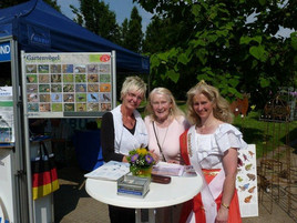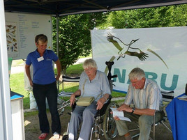 Es war mal wieder soweit, Rosenfest. Dieses Fest wird im Park jedes Jahr gefeiert und von den Menschen begeistert angenommen. An zahlreichen Ständen, die großzügig im Park verteilt sind kann man alles rund um das Thema Rosen kaufen, oder auch nur einfach einen schönen Sonntagsspaziergang unternehmen. Grund genug uns hier mit einem Messestand zu präsentieren. Schon früh am Morgen kamen die ersten Besucher an unseren Stand um sich bei uns Rat zu Ihren Problemen im Garten , Bestimmungsanfragen zu stellen, oder an unserem Vogelquiz teilgenommen haben. Dieser wurde dieses Mal von Neil Handy mit viel Fachwissen , aber auch Witz und kleinen Hilfestellungen geleitet. Es galt 10 Gartenvogelarten auf unserer Infotafel zu erkennen. Dafür gab es dann einen kleinen Preis. Es ist immer wieder erstaunlich wie viele Menschen sich für Vögel interessieren. Immer wieder bleiben Besucher vor der Tafel stehen um nach "Ihrem" Vogel aus dem Garten zu suchen, oder sich bei der Bestimmung von uns helfen zu lassen. Schon alleine das bestärkt uns darin weiterhin solche Infostände durchzuführen. Neben vielen , die sich Infomaterial zum NABU mitgenommen haben konnten wir im laufe des Tages auch wieder zwei neue Mitglieder im NABU begrüßen .