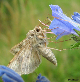 Stets hielten wir Ausschau nach Neuntötern, jedoch ohne Erfolg. Wir erfreuten uns aber am Anblick eines am Himmel kreisenden Schwarzmilans, am Gesang von Garten- und Klappergrasmücke und Fitis, und natürlich an den zahlreichen Schmetterlingen am Wegesrand, wie z.B. einigen Bläulingen, Schornsteinfegern, Kleinen Füchsen und Schachbrett-Faltern, sowie an einer Mauereidechse und einzelnen Wacholderbüschen. Pflanzen wie das Taubenkropf-Leimkraut zeigen den für das Gebiet typischen mageren und kalkhaltigen Boden und den sonnigen Standort an.