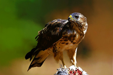 Auch der Akrobat Kleiber, welcher oft schraubenartig kopfüber an Baumstämmen hinunterklettert, sammelt Fressbares und legt irgendwo in einem Baumspalt einen Vorrat für den kommenden Winter an. Greifvögel wie Sperber, Habicht und Mäusebussard lassen sich im Wald nur mit etwas Glück bei der Jagd oder beim Fressen aus einem gut getarnten Versteck entdecken und fotografisch dokumentieren.